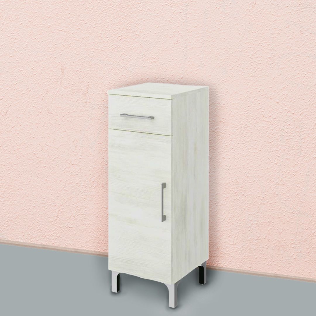 Mobiletto per bagno a terra 30cm, anta+cassetto quercia bianco | Rimini